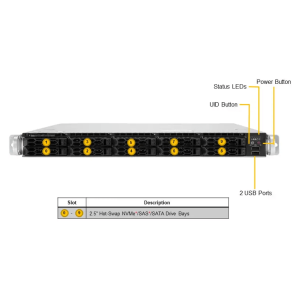 Front Panel – buttons: Power On/Off System Reset