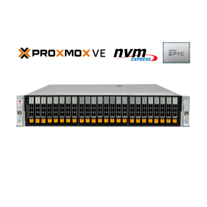 2U rackmount server tested and certified for Proxmox VE, designed for companies requiring performance and reliability. It offers high performance provided by AMD EPYC™ 9005 Series Processor with up to 192 cores and up to 12 Enterprise Datacenter-grade NVMe drives. Equipped with dual 10/25 Gbit copper or fiber optic connectivity and redundant Titanium Level power supplies.