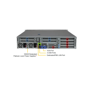Product Name: Proxmox VE Datacenter Server D4 Mainboard: Supermicro Super H13SSW Chassis: 2U Rackmount CPU: Supports a single 5th Generation AMD EPYC™ 9005 Series Processor; Supports a single 4th Generation AMD EPYC™ 9004 Series Processor Memory: 12 DIMM slots; Up to 3TB 5600MT/s ECC DDR5 RDIMM Network Interface Controller (NIC): Intel 10/25 Gbit Controller; Options: Copper RJ45 or Fiber SFP+/SFP28 Power Supply: Dual 1200W Titanium Power Supplies Power Consumption: Between 90 Watts and 900 Watts, depending on configuration USB Ports: 1 × USB 3.0 (Type-A), 4 × USB 2.0 (2 rear, 2 via headers) Input/Output Ports: USB: 2 × USB 3.0 ports (rear); Video: 1 × VGA port; Serial: 1 × COM port (rear) Front Panel: Buttons: Power On/Off button; LEDs: Power status LED, HDD activity LED, Network activity LEDs Remote Management (IPMI): Supports Intelligent Platform Management Interface v2.0; IPMI 2.0 with virtual media over LAN and KVM over LAN (HTML5-based) Temperature/Humidity: Operating range: 0°C to 60°C / 10% to 85% relative humidity (non-condensing) Dimensions: 438 mm (W) x 650 mm (D) x 89 mm (H) – 2U Rackmount Available Colors: Gray / Black (as shown in product photos)